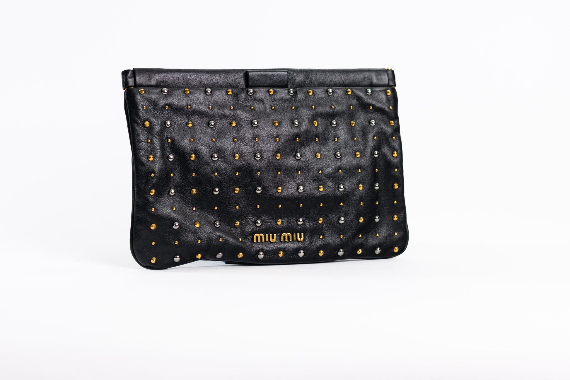 MIU MIU Black Leather Studded Cutch